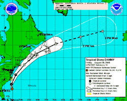 - ↑ (en) Beven, « Tropical Storm Danny Discussion Number 1 », National Hurricane Center, 26 août 2009 à 15 tu (consulté le )