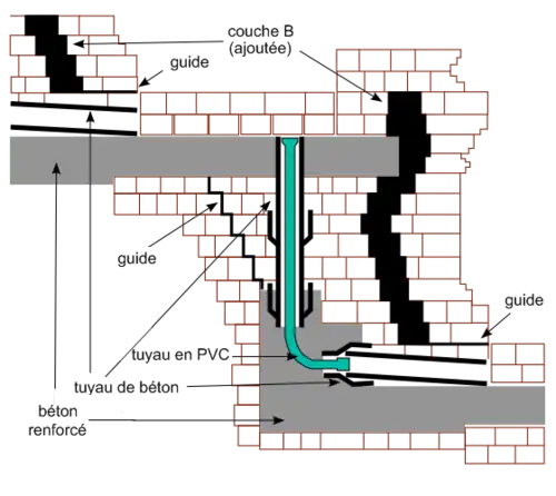 Lors de la restauration de 1973, le système de drainage a été amélioré par un scellement en béton et des tuyaux en PVC.