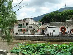 Kwan Tai Kung Le complexe du temple comprend trois temples répartis dans deux bâtiments : le premier bâtiment est un temple de Tin Hau, construit en 1737, auquel est ensuite ajoutée une annexe, abritant un temple de Kwan Tai[5] (à gauche sur l'image). Sur sa gauche, Shui Yuet Kung (en), construit en 1788, est dédié à Kwun Yam et au Dieu du sol[6]. |