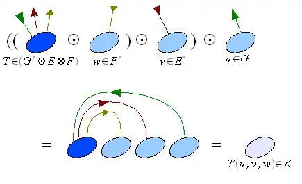 Si et sont représentées par les tenseurs et , alors l'application composée peut être représentée par le tenseur .