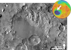 Ce cratère aurait pu contenir de l'eau liquide[1] puis solide[2] au Noachien et à l'Hespérien, comme le laissent penser l'observation d'argile et de couches sédimentaires.