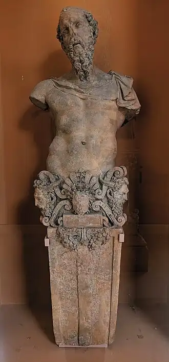 Le Terme à figure d'homme barbu est exposé à partir de 2014 dans La Galerie du temps (no 126), une des expositions du Louvre-Lens[1], où il remplace Mercure, dieu des voyageurs et des bergers, jouant de la flûte (MR sup 55), une sculpture de Baccio Bandinelli[4].