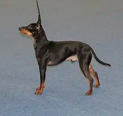 Le terrier d'agrément noir et feu descend probablement du Manchester terrier. Très populaire au XIXe siècle, la race est présente dans les riches maisons anglaises où elle sert de ratier et de « chien jouet ». Toutefois, le terrier d'agrément noir et feu est à présent extrêmement rare même dans son pays d'origine[1].
