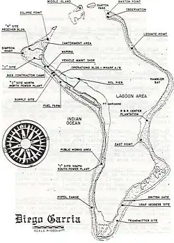 Le , la base militaire américaine de Diego Garcia est opérationnelle[8]. Elle est louée à l'armée américaine sur la base d'un accord conclu le [8]. Six mois auparavant, le 17 juillet, commençait l'expulsion intégrale de la population de l'archipel des Chagos vers Maurice et les Seychelles[8]. Terminé en 1973 après le rachat de toutes les terres, ce déplacement est nécessaire selon les autorités pour permettre la construction de la base[8].