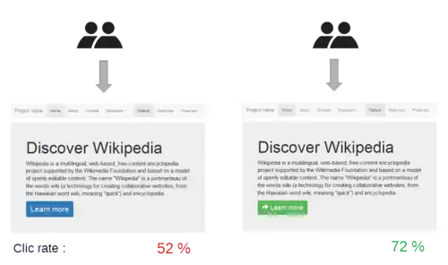 Sur un site de commerce électronique, le tunnel de vente est généralement un bon candidat pour les tests A/B, car même une réduction mineure du taux de rebond peut conduire à une augmentation significative des ventes. Parfois, on peut obtenir des améliorations significatives en testant des éléments tels que le texte, les mises en page, les images et les couleurs[11],[12], mais pas toujours. Dans ces tests, les utilisateurs ne voient qu'une des deux versions, car le but est de découvrir laquelle des deux versions est préférable[13].