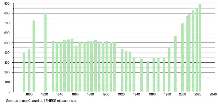 - ↑ Population municipale de référence en vigueur au 1er janvier 2025, millésimée 2022, définie dans les limites territoriales en vigueur au 1er janvier 2024, date de référence statistique : 1er janvier 2022.