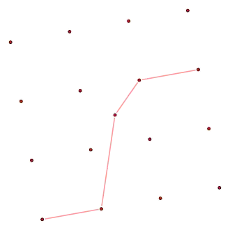 Étant donné un ensemble de points dans le plan euclidien, on forme une suite en triant les points par abscisses croissantes ; les nombres comparés dans le théorème d'Erdős-Szekeres sont alors les ordonnées des points. Dans ce contexte, le théorème affirme que s'il y a au moins rs + 1 points, on peut trouver une ligne polygonale de r segments de pentes positives, ou de s segments de pentes négatives. Par exemple, en prenant r = s = 4, tout ensemble de 17 points contient une ligne polygonale composée de quatre segments qui ont tous une pente de même signe.