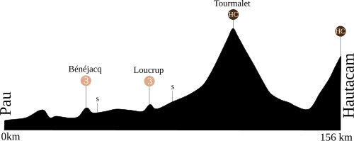 La 10e étape du Tour de France 2008 était une course cycliste de 156 km de long partant de Pau (altitude : 200 m) et arrivant à Hautacam (1 520 m).