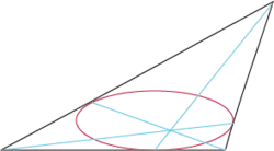 - Les droites reliant les sommets d'un triangle aux points de contact du cercle inscrit sont concourantes au point de Gergonne de ce triangle.