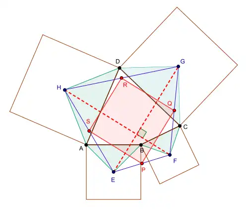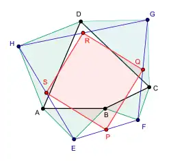 | Théorème de Petr-Douglas-Neumann appliqué à un quadrilatère A0 = ABCD. A1 = EFGH est construit en utilisant pour angle au sommet π/2 et A2 = PQRS avec un angle au sommet de π. |