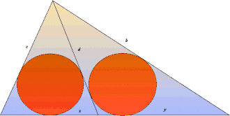 Avec les notations précédentes, on cherche la longueur de la cévienne lorsque les disques inscrits dans et ont même rayon.