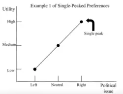 Typiquement, dans une structure politique unidimensionnelle gauche-droite, le théorème s'applique: l'option centriste bat (avec l'aide des voix de droite) toute option de gauche, et bat (avec les voix de gauche) toute option de droite.