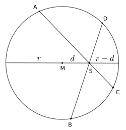 Plus précisément, pour deux cordes AC et BD d'un même cercle se coupant en un point S, on a l'égalité suivante :