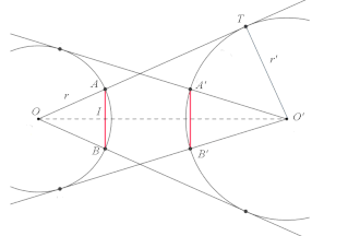Théorème — Étant donné deux cercles non sécants et de centres et et de rayons r et r', les tangentes à issues de coupent en et , et les tangentes à issues de coupent en et . Alors, quels que soient les diamètres des cercles, on a .