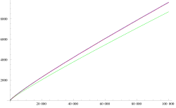 Un approximant de π(x) nettement meilleur que xln(x)[7] est la fonction logarithme intégral li(x) ou sa variante, la fonction d'écart logarithmique intégrale Li(x)[8] :