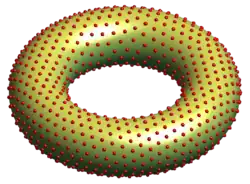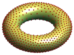 Par exemple, lorsque les points (les grains de pavot) sont confinés à la surface à 2 dimensions d'un tore (la surface d'un bagel), plongé dans un espace à 3 dimensions, si les points se repoussent avec une force proportionnelle à l'inverse du carré de leur distance (s = 2), les points se répartiront uniformément sur la surface du tore s'ils sont en nombre suffisant, puisque le tore est une surface de dimension deux. Toute force répulsive plus puissante (s > 2) aura la même propriété.