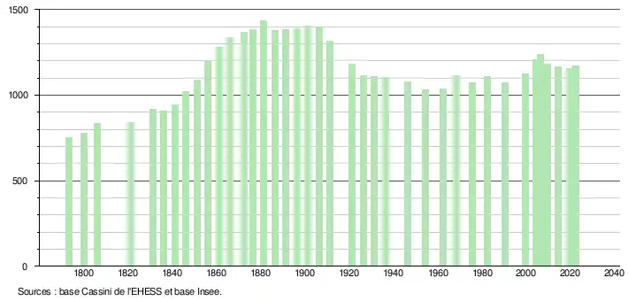 - ↑ Fiches Insee - Populations de référence de la commune pour les années 2006, 2007, 2008, 2009, 2010, 2011, 2012, 2013, 2014, 2015, 2016, 2017, 2018, 2019, 2020, 2021 et 2022.