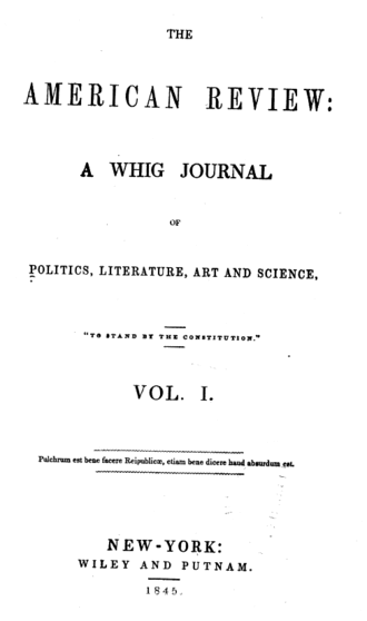 The American Review, également connue sous le titre The American Review: A Whig Journal et The American Whig Review, est un mensuel installé à New York. Publié entre 1845 et 1849 par G. P. Putnam's Sons, son propriétaire et responsable est George H. Colton.