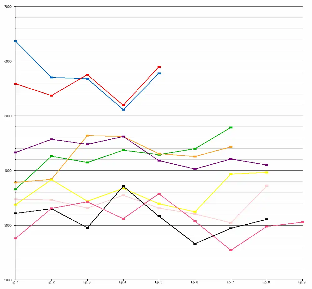 | 10 | Samedi | 8 | - 5 octobre 2024 | 2 945 000 | 18,3 % | 2 505 000 | 16,4 % | 2 614 000 | 18,2 % | 31 [31] | ||