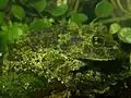 Sa peau est verruqueuse, ressemblant à de la mousse par sa texture et ses couleurs. Son dos est vert olive marbré de noir. Son ventre est jaune tacheté ou marbré de noir[3].