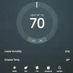 En 2011, Nest Labs a développé le Nest Learning Thermostat (en). Ce thermostat réduisait la consommation d'énergie domestique en s'attaquant aux problèmes des thermostats programmables par l'utilisation d'une meilleure technologie basée sur des capteurs, des algorithmes, de l'apprentissage automatique et de l'informatique en nuage. Ces technologies apprennent les comportements et les préférences des occupants, et ajustent la température à la hausse ou à la baisse afin de rendre l'occupant confortable lorsqu'il est chez lui et d'économiser l'énergie lorsqu'il est absent. En outre, le thermostat se connecte au réseau Wi-Fi de la maison. Cela permet aux utilisateurs de modifier la température, d'ajuster l'horaire et de vérifier la consommation d'énergie à partir d'un téléphone intelligent ou d'un ordinateur. Toutes ces fonctionnalités faisaient partie de l'objectif du Nest de créer un thermostat facile à utiliser qui permet aux utilisateurs d'économiser de l'énergie et de l'argent[13].