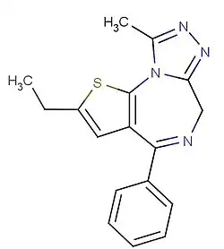 | Nom UICPA | 2-éthyl-9-méthyl-4-phényl-6H-thiéno[3,2-f][1,2,4]triazolo[4,3-a][1,4]diazépine | |