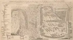 « Il s'agit de la première gravure historique réalisée en Amérique. Blodget a été témoin de la bataille et a immédiatement dessiné le plan original à partir duquel Thomas Johnson a réalisé la gravure au trait. »