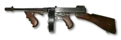Le Thompson est un pistolet-mitrailleur développé aux États-Unis sous la direction de John T. Thompson entre 1917 et 1919. Au cours des décennies suivantes, de nombreuses versions de la Thompson ont été développées, dont la plupart tirent la cartouche .45 ACP. Les premiers modèles sont très connus en raison de leur utilisation par les bandes criminelles des Roaring Twenties comme l’Outfit de Chicago. Les modèles plus tardifs sont également notables en raison de leur utilisation par les Alliés pendant la Seconde Guerre mondiale.
