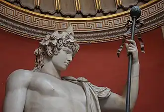 Dans la religion grecque antique, le thyrse est porté par les adorateurs de Dionysos et est un instrument sacré.