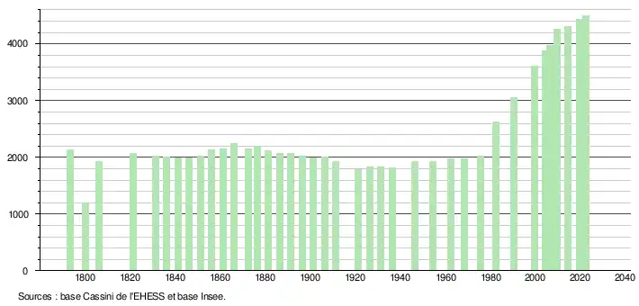 - ↑ Fiches Insee - Populations de référence de la commune pour les années 2006, 2007, 2008, 2009, 2010, 2011, 2012, 2013, 2014, 2015, 2016, 2017, 2018, 2019, 2020, 2021 et 2022.