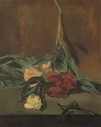 L'année 1864 est celle qui voit apparaître chez Manet les premiers bouquets de pivoine, fleur d'Orient charnue et fragile qui les résume toutes à ses yeux[1].
