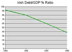 Charlie McCreevy, ministre des Finances entre 1997 et 2004 réduisit nettement la dette publique[11] durant le « boom économique ». Il a été élu meilleur ministre des finances irlandais de tous les temps en 2004 par le Finance Magazine[12]. En 2004, Charlie McCreevy laissa son poste de ministre des Finances irlandais pour travailler à la Commission européenne.