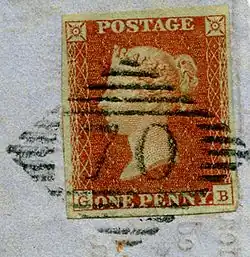 Seule l'identification du timbre à date, qui certifie que le timbre a été oblitéré dans une ville irlandaise, permet d'authentifier les timbres postaux utilisés en Irlande entre 1840 et 1922. Les timbres utilisés durant cette période sont appelés Great Britain used in Ireland ([timbres de] Grande-Bretagne utilisés en Irlande)[3]. De 1840 à 1844, le célèbre Penny Black (premier de tous les timbres) et ses contemporains étaient oblitérés d'une Croix de Malte. Il n'y avait alors aucun texte ni aucune donnée chiffrée permettant d'affirmer qu'ils avaient été utilisés en Irlande ; cependant certaines Croix de Malte présentaient des signes distinctifs spécifiques à quelques communes irlandaises, entre autres Belfast, Eyrecourt, Cork, Hollymount, Limerick et Mullingar[4]. À partir de 1844, on rajouta aux oblitérations des données alphabétiques et numériques qui permirent l'identification de la ville d'où ils furent expédiés. Les oblitérations sont évidemment plus faciles à identifier si le timbre est toujours solidaire de son enveloppe puisque le cachet y est entièrement visible.