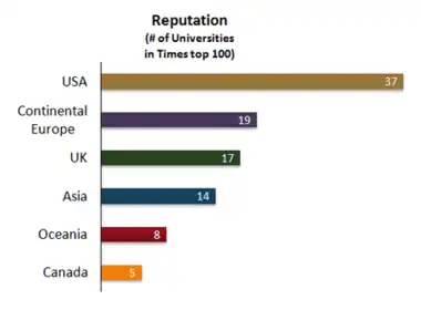Avec le classement mondial des universités QS et le classement académique des universités mondiales par l'université Jiao Tong de Shanghai, le Times Higher Education World University Rankings est considéré comme l'un des palmarès universitaires les plus influents[1],[2],[3]. En 2010, The Globe and Mail affirme qu'il est « probablement le plus influent[trad 1],[4]. »