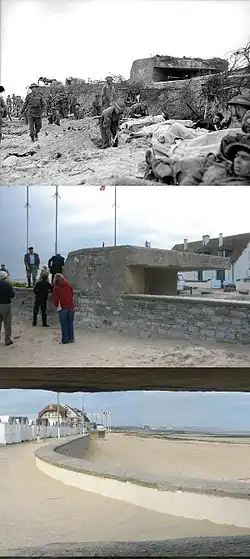 Les photos à droite illustrent le concept de tir en enfilade. Ce bunker allemand a été construit sur un saillant de la jetée qui jouxte une bonne partie de la plage ; les troupes d'assaut abritées sur le côté inférieur de la jetée auraient été directement exposées au feu ennemi depuis cette position de tir, et auraient été clairement alignées le long de l'axe de l'arme installée dans le bunker. Les troupes cachées le long de la digue auraient été prises en enfilade par cette arme.