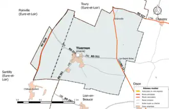 - ↑ « Orthodromie entre Tivernon et Trinay », sur fr.distance.to (consulté le ).