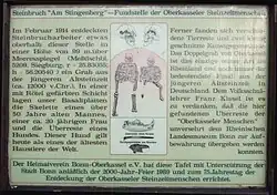 - « Der Oberkasseler Steinzeit-Mensch, Seite der Familie Uhrmacher (Steinbruchbesitzer) über das Grab »