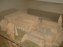 Monument original dans l'atrium de l'antique basilique de saint Pierre, détruit durant la démolition[15] De petits fragments de l'ancienne épitaphe subsistent dans la crypte de Saint-Pierre[16] |
