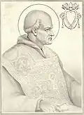 Enterré à l'origine dans le portique de l'antique basilique, transféré à l'intérieur, un bras est transféré à l'église Santa Maria in Cosmedin; d'autres reliques ont été transférées dans la chapelle de Saint-Sylvestre à côté de la basilique des Quatre-Saints-Couronnés; le reste a été transféré dans une autre chapelle de la basilique Saint-Pierre[17]. L'oratoire qui autrefois contenait la tombe existe toujours. Il en existe un croquis de Giovanni Giustino Ciampini[16] |