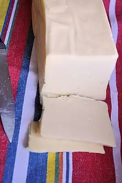 Fromage à base de lait de vache, la tome fraîche est un caillé fortement pressé et légèrement fermenté, sorti du cycle de fabrication du laguiole, du cantal, ou du salers, avant broyage, salage, second pressage et affinage[6]. En raison du fort pressage du caillé, la tome fraîche présente ainsi des taux élevés de matière sèche, tandis que sa courte période de maturation[Note 2] et l'absence d'affinage lui procurent une acidité relativement importante. Ces caractéristiques la rapprochent à la fois des fromages à pâte pressée non cuite et des fromages à pâte fraîche, sans qu'elle ne réponde néanmoins à l'ensemble des critères définissant chacune de ces deux catégories.