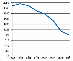 | 1 938 | 2 005 | 1 946 | 1 741 | 1 614 | 1 374 | 969[2] | 816[1] |