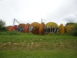 Le mur de boules à côté de la zone industrielle.