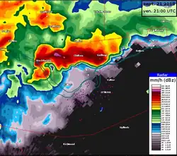 - ↑ (en) « Tornado warning issued for Ottawa-Gatineau area », CBC News, (lire en ligne, consulté le ).