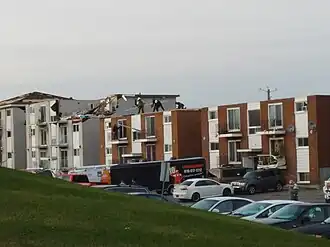 - 1 2 Nicolas Bérubé, « Tornade à Gatineau: des résidents espèrent un toit pour l'hiver », La Presse, (lire en ligne, consulté le ).