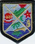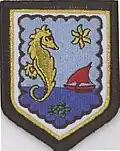 La Compagnie de La Réunion devient Groupement en 1960 puis Légion de l’Océan Indien en 1964. Cette Légion est dissoute en 1973 pour devenir Groupement de la Réunion qui intègre les Îles Éparses puis Mayotte en 1975. C’est seulement le qu’est créé le Commandement de la Gendarmerie de Mayotte. Il n’y a pas de description héraldique particulière pour Mayotte. Cet écusson très récent est un montage d’éléments déjà utilisés pour la Réunion. On retrouve l’hippocampe, le bateau et la tortue. L’étoile de mer a disparu au profit d’une vraie étoile, le soleil.