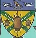 Les deux tortues, à ‘dextre’ une Eretmochelys imbricata (tortue à écaille), à ‘senestre’ une Chelonia mydas (tortue à soupe) sont placées ‘en tenant’ ou comme ce sont des animaux, on devrait dire ‘en support’.