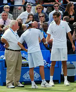 Andy Murray, no4 mondial et tête de série no1, est éliminé dès son entrée en lice au deuxième tour par Nicolas Mahut; il était tenant du titre sur le gazon londonien.