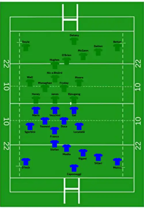 | Le à 17 h 45 | Stade Sergio-Lanfranchi, Parme | 24 - 7 | Irlande | |