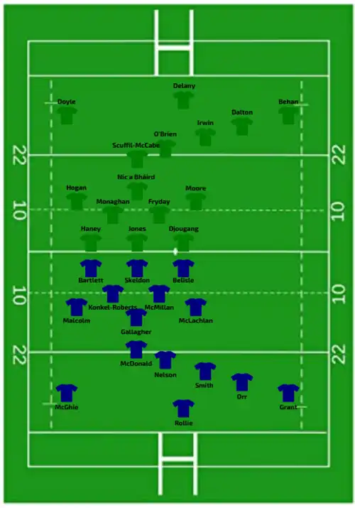 - 9 essais de L.Packer (26e), Heard (35e), Dow (40e), Aitchinson (45e), Breach (50e), Kildunne (54e), Muir (59e), Botterman (63e) et Beckett (73e).