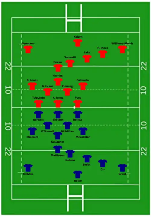 - 6 essais de Smith (40e), Skeldon (47e), Bartlett (56e), McGhie (65e), Malcolm (74e) et Rollie (80e+1).